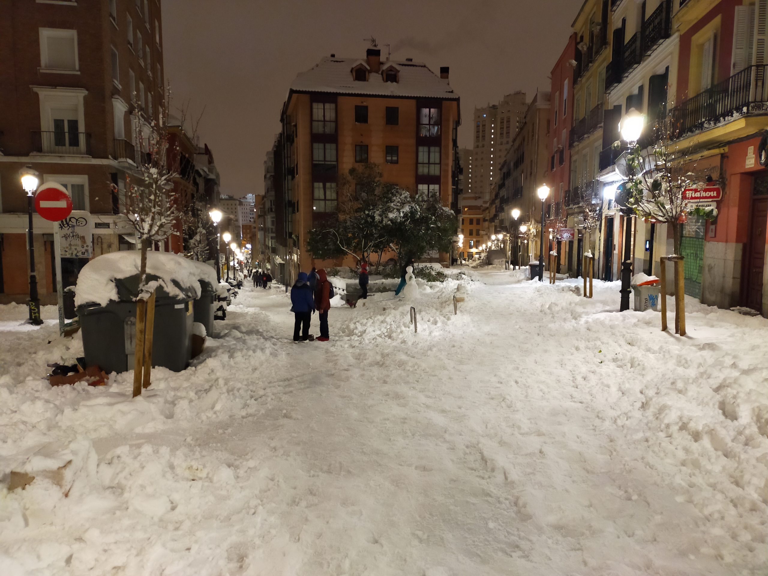 Calles nevadas de Malasaña durante la gran nevada de enero