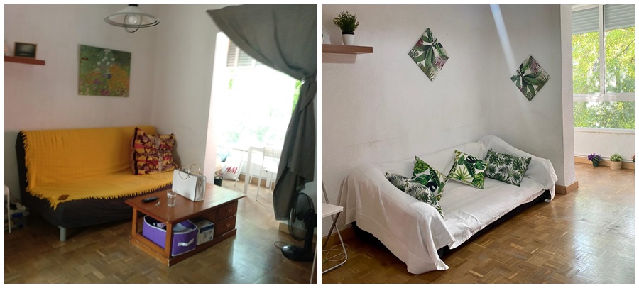 Nos os perdáis a continuación el antes (izda) y el después (derecha) de este encantador piso: